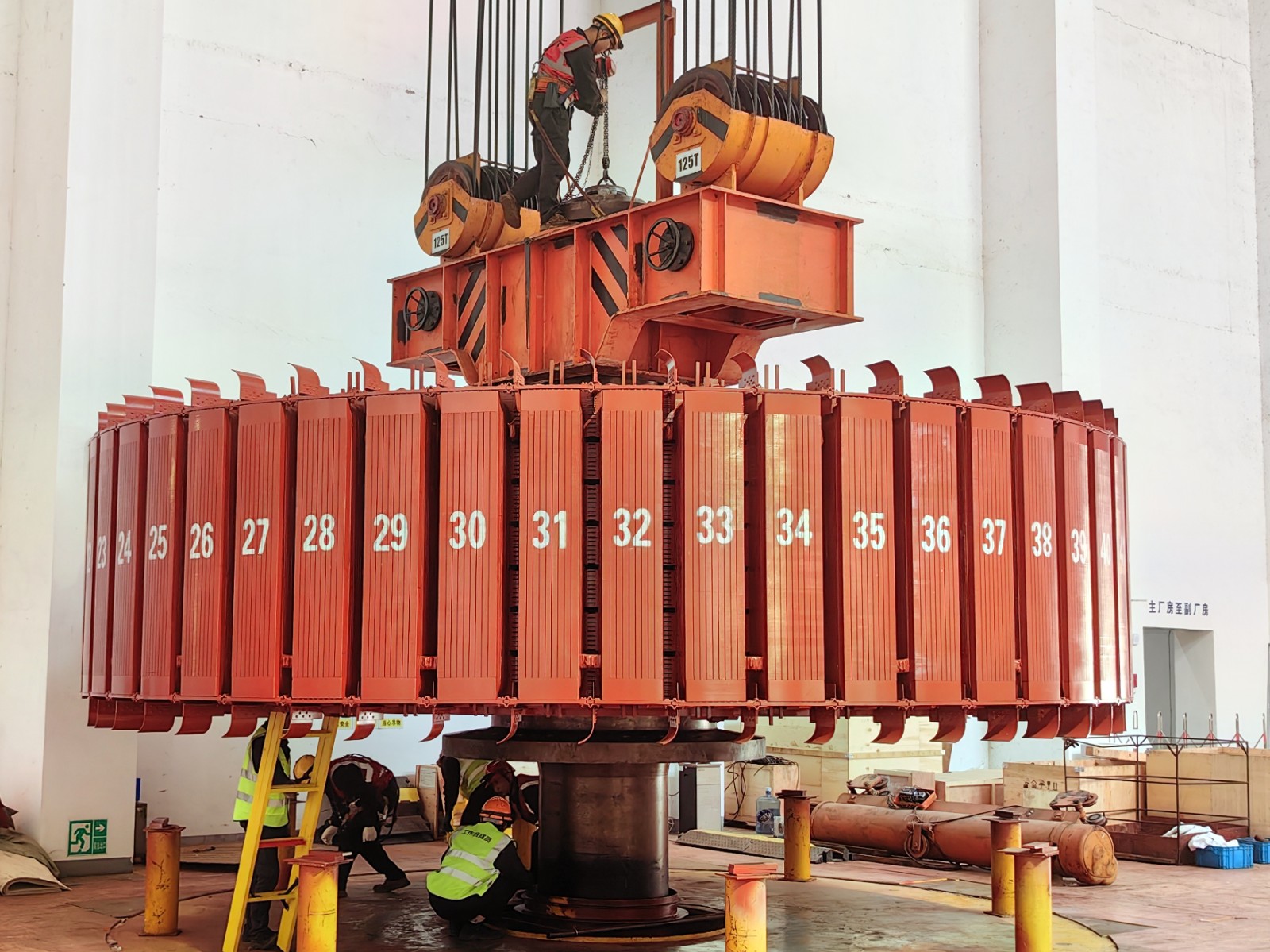 为确保转子一次回装成功,回装作业前,川投电力检修维护队与两家电厂提前谋划,仔细梳理转子回装工作流程,对检修人员进行全方位安全、技术交底。回装过程中,组织党员骨干带头攻坚,检修团队成员迅速响应,分工明确、协同配合,严格遵守既定标准要求和施工工序,确保转子回装作业高效推进。