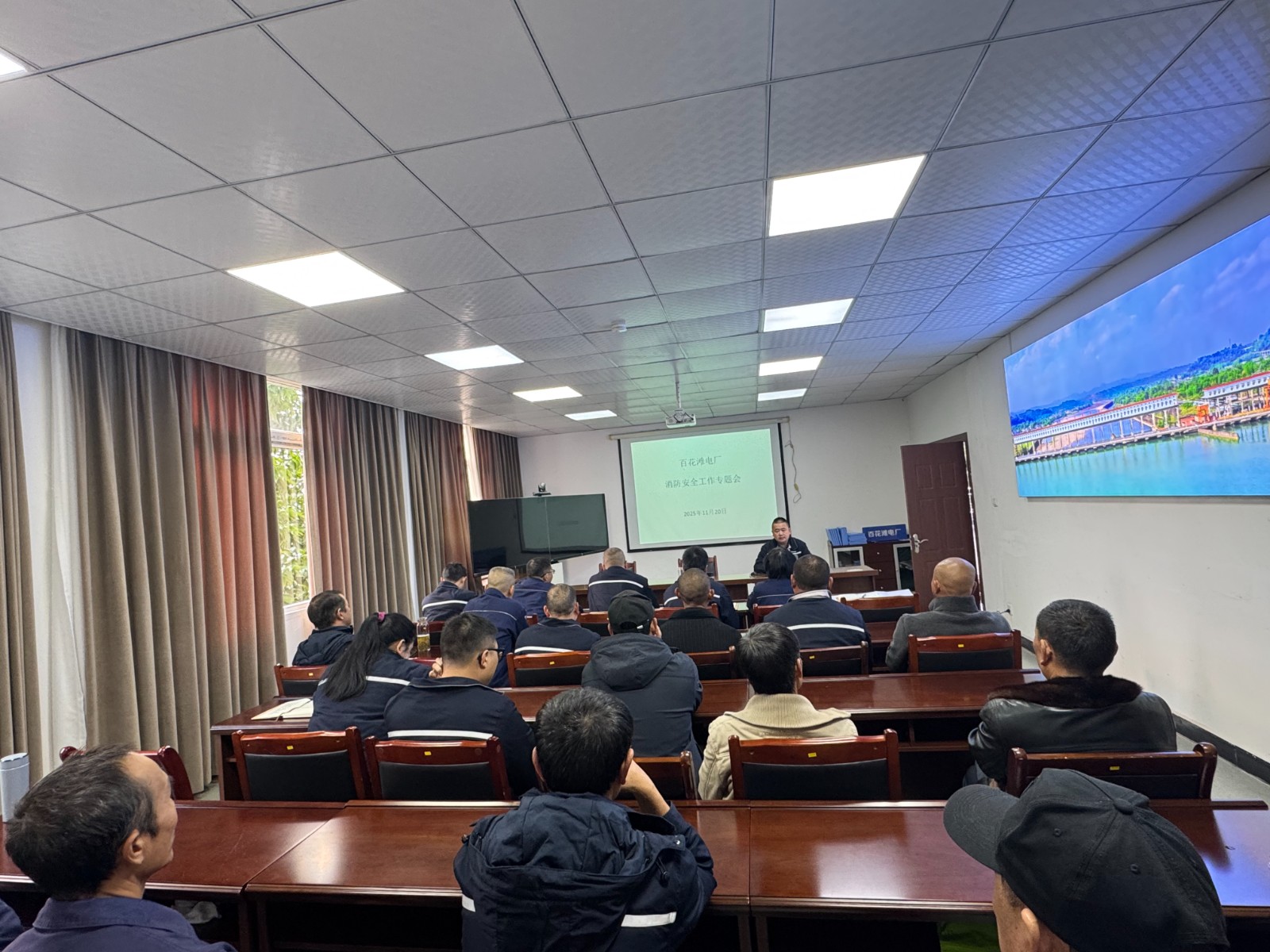 电厂坚持“教育为先、预防为主”,开展多形式、覆盖全面的宣传教育活动。一方面强化理论武装:召开事故经验反馈专题会、消防安全工作专题会,组织专题培训,推动安全理念入脑入心;另一方面深化警示教育,组织全员观看消防安全教育警示片,通过剖析典型火灾案例,引导员工举一反三,警钟长鸣。