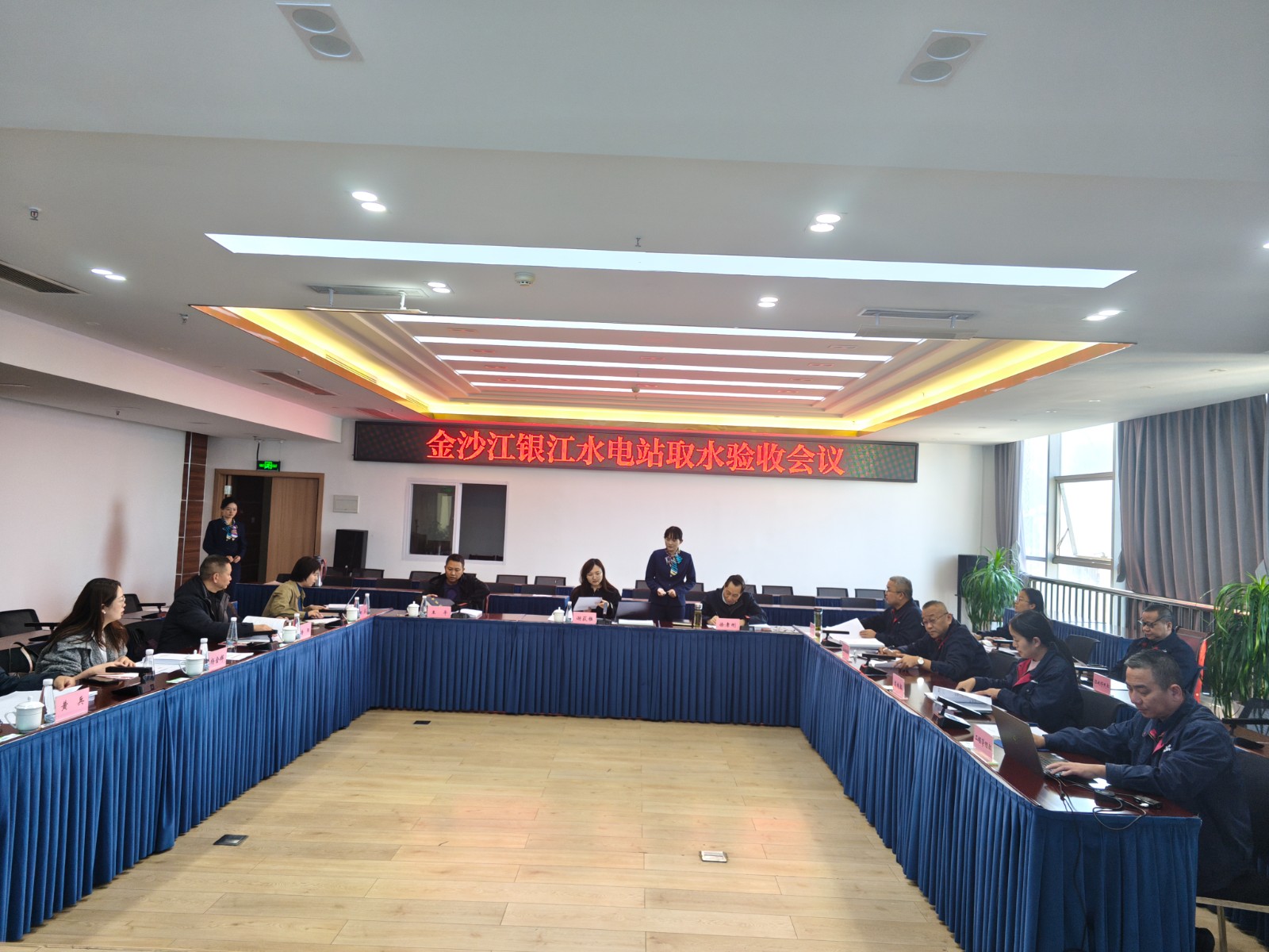 随后,验收组召开验收会议。会议期间,验收组详细审阅了银江水电站取水验收工作报告,听取了公司工程建设及取水设施相关情况汇报,对取水申请批复意见落实情况进行复核,并与各参会单位进行了充分的讨论和交流,形成了金沙江银江水电站取水验收意见,一致同意金沙江银江水电站通过取水验收,在完善取水报告有关资料后核发取水许可证。