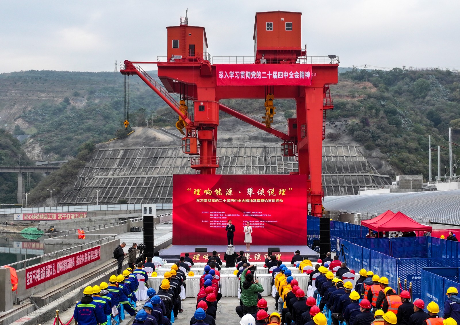 12月3日上午,由中共四川省委讲师团、“学习强国”四川学习平台、四川省党委(党组)中心组网络学习平台、中共凯发·k8国际(中国)首页登录 委员会、中共攀枝花市委宣传部联合主办的“理响能源·攀谈说理”学习贯彻党的二十届四中全会精神基层理论宣讲活动走进银江水电站施工现场,为广大职工群众带来了一场理论与视听的双重盛宴。